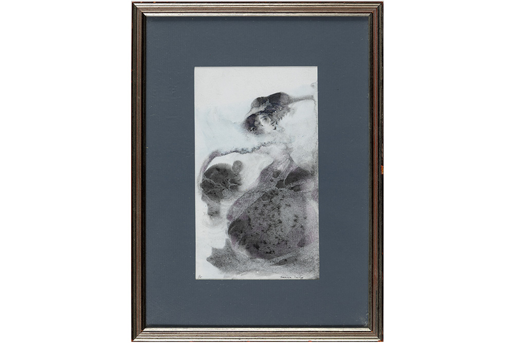 20th Cent. Hungarian aquarelle with its title in Hungarian (French girl)