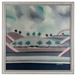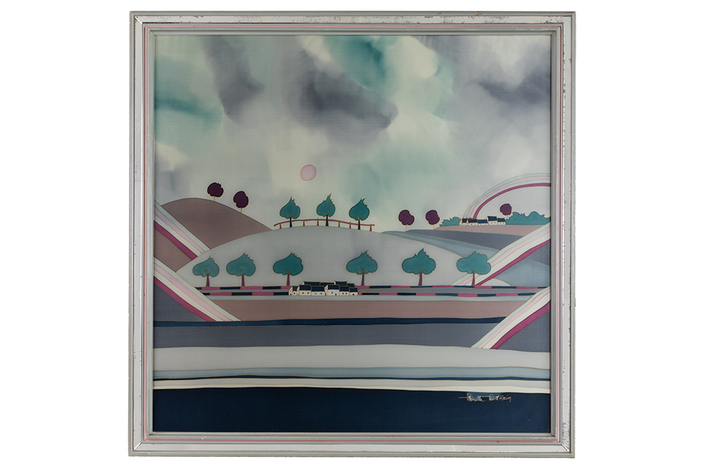 PENELLE ODILE (1946 – 2015) aquarel op zijde : “Landschap” – 82 x 82 getekend