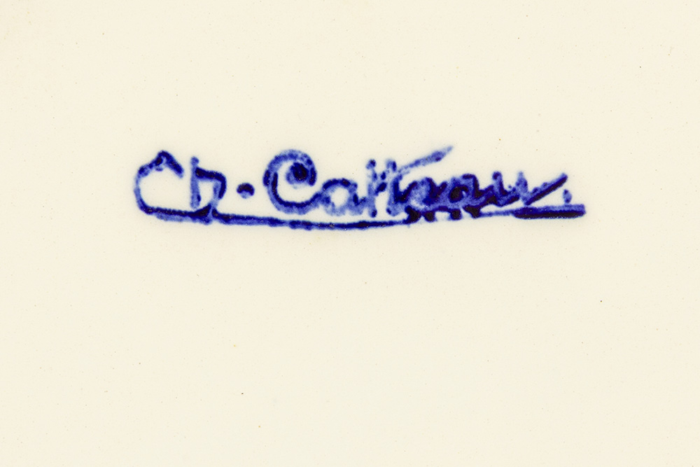 CATTEAU CHARLES (1880 – 1966) jubileumbord in ‘Keramis’ gemerkte faience – diameter : 29 cm getekend