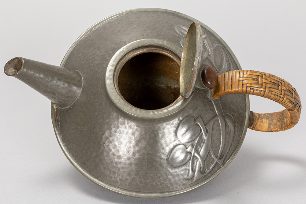 Archibal Knox for Liberty marked Art Nouveau tea kettle in pewter