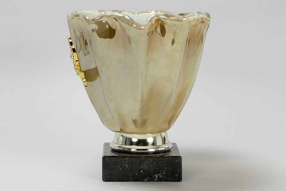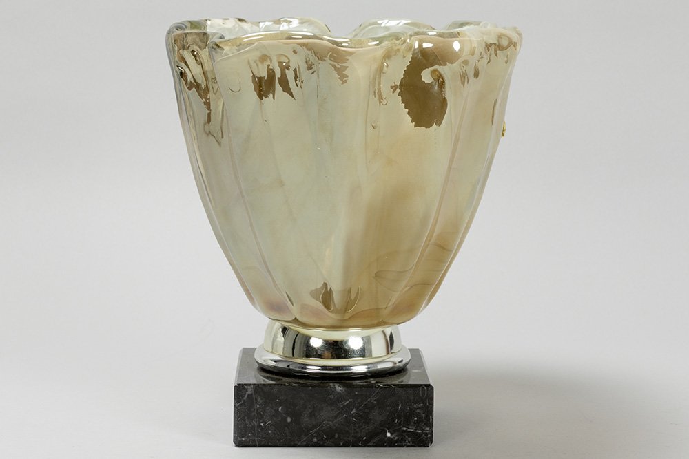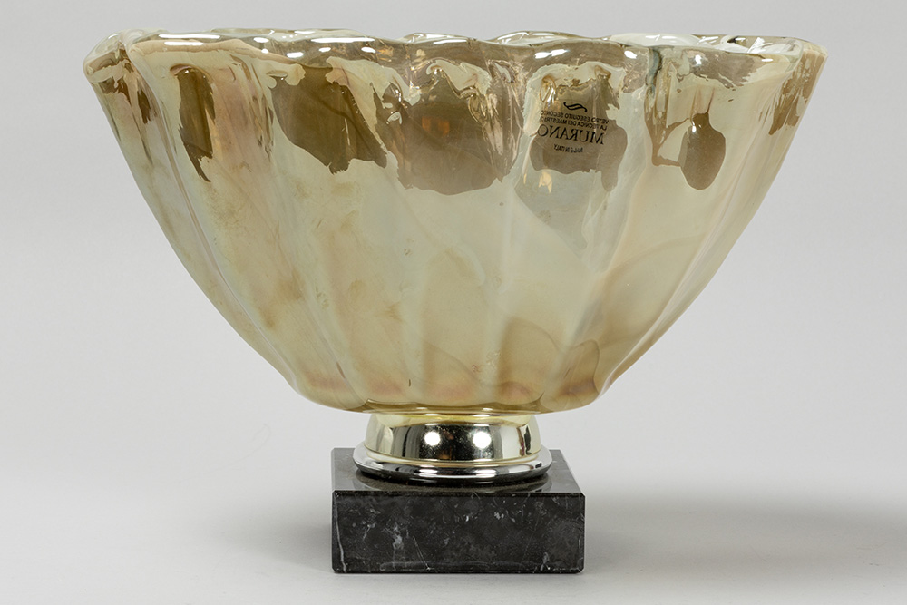 Italiaanse coupe in Murano-glas versierd met een vogeltje in kristal van Swarovski –