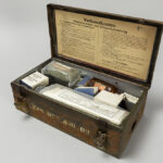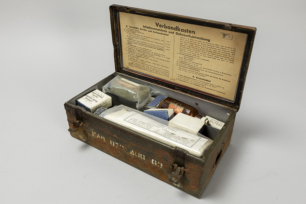 Lot 903 Lot: 903 Your Bid: Verbandkoffertje uit WO2 dd 1943 – met inhoud First Aid Kid from WW2 dd 1943 – with content Auctionday 7/05/2026 Estimation - euro << back to the catalogue