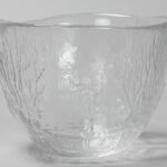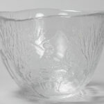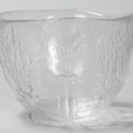 Kleine coupe in kleurloos glas met reliëfdecor, gemerkt “Schweden – Sweden” – hoogte : 10,5 cm