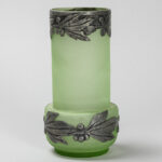 Art Nouveau-vaas in gesatineerd lichtgroen glas met een montuur in tin – hoogte : 18,5 cm – ca 1900