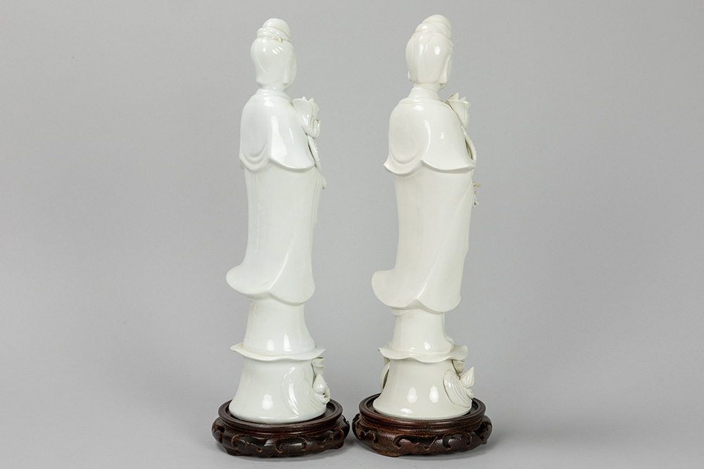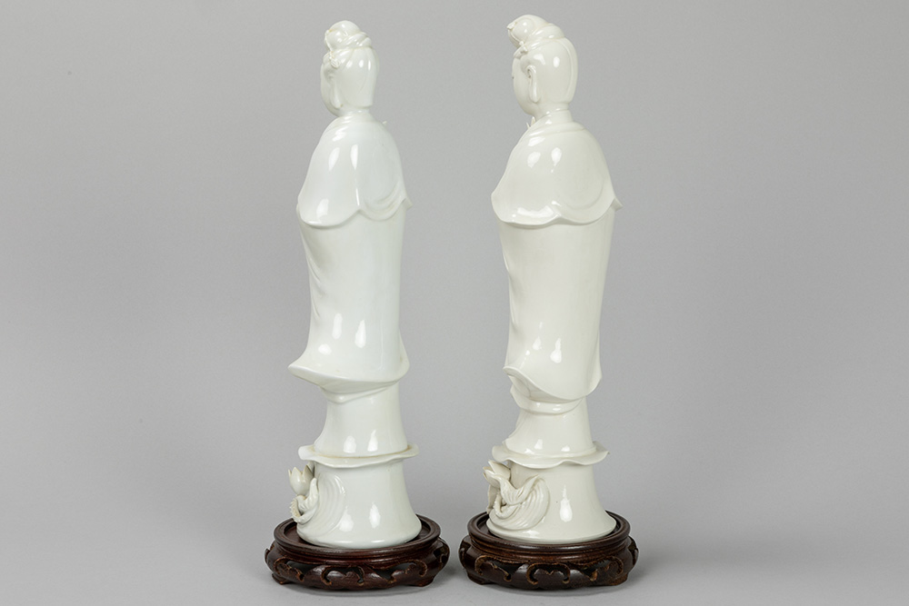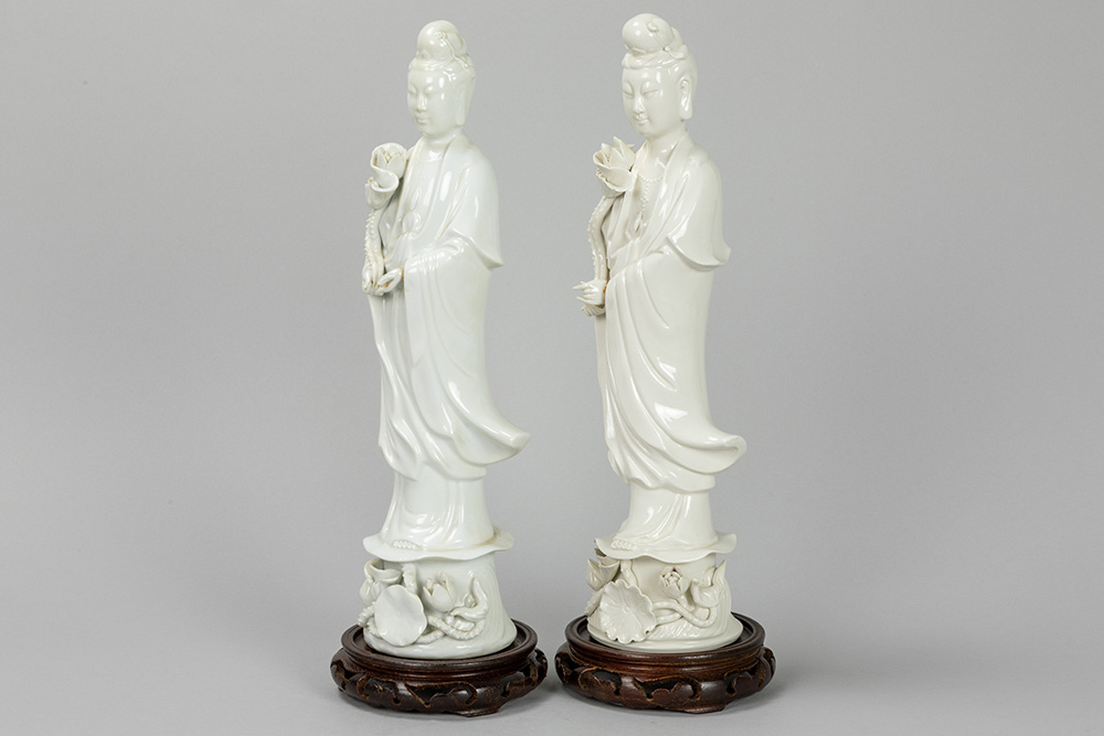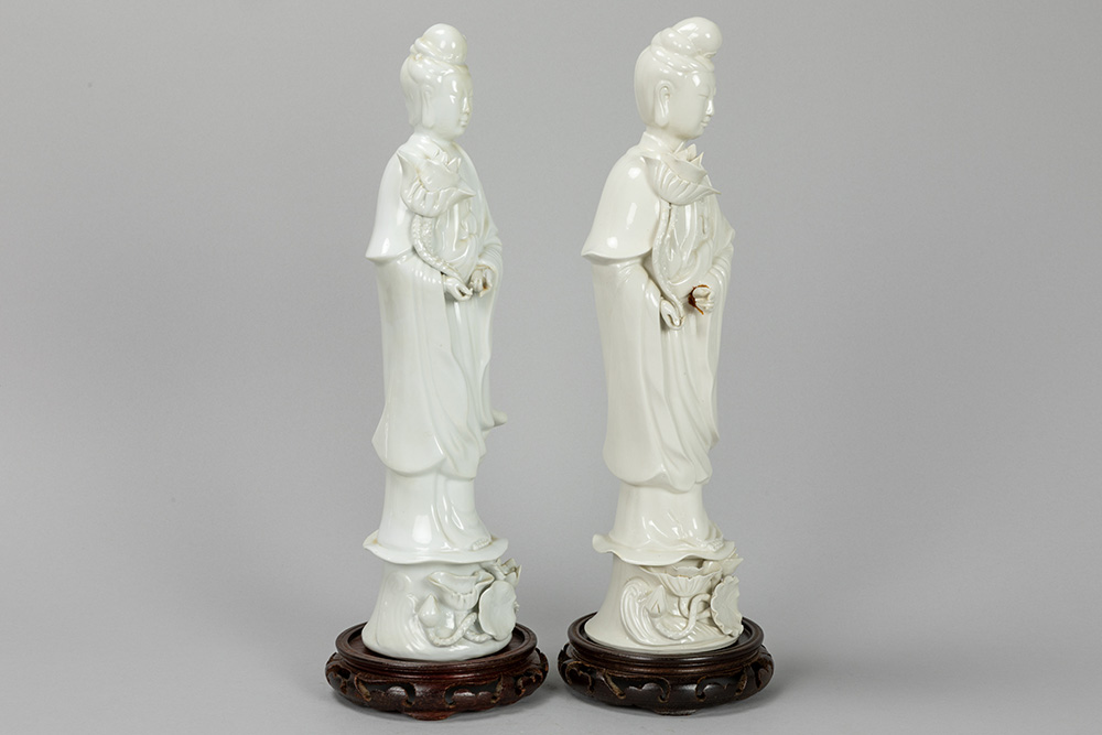 two “Quan Yin” figures in porcelain