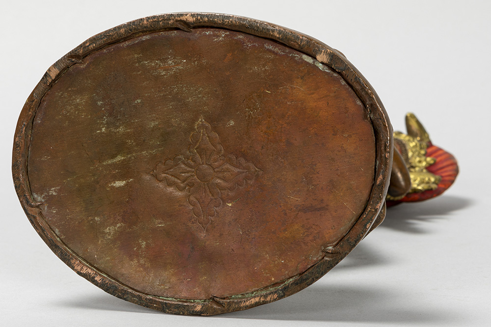 Himalayan tantric- buddhistic “Vajravarahi” sculpture in a copper alloy with remains of the original gilding and with polychromy