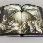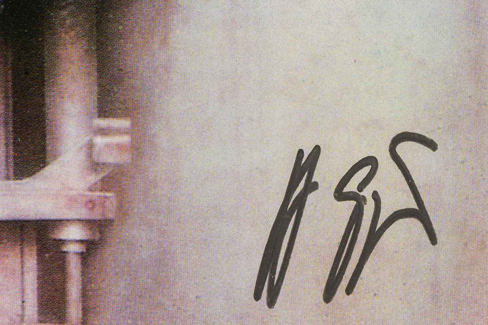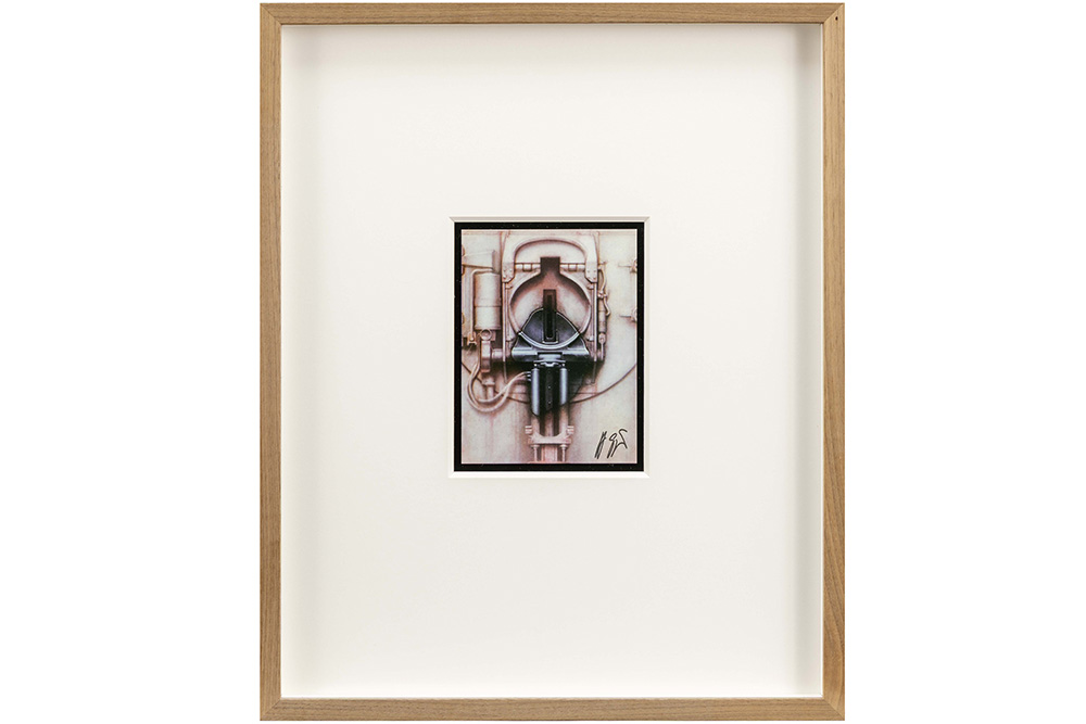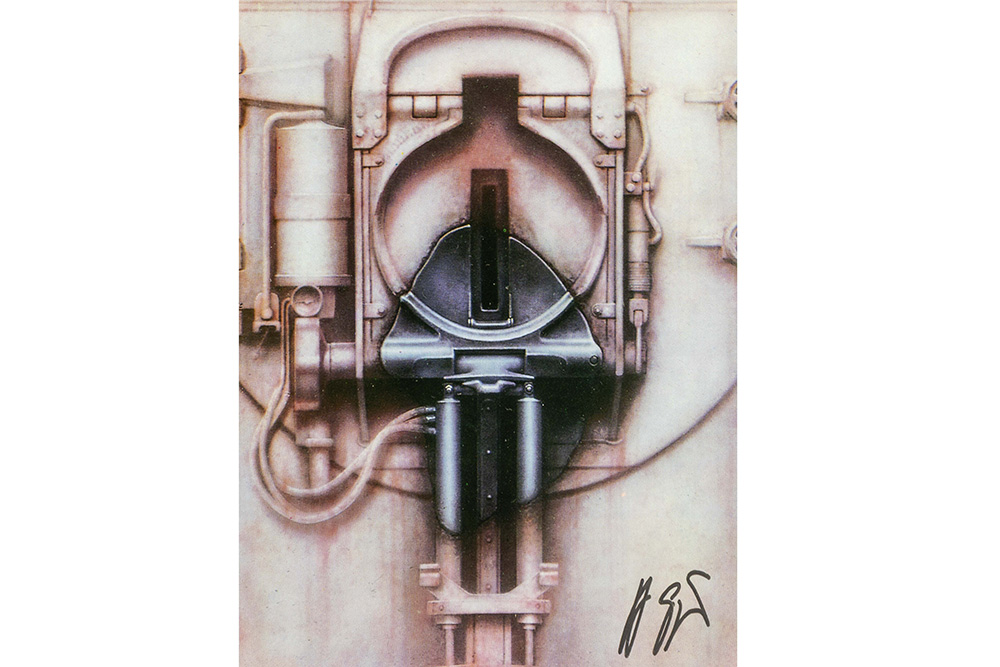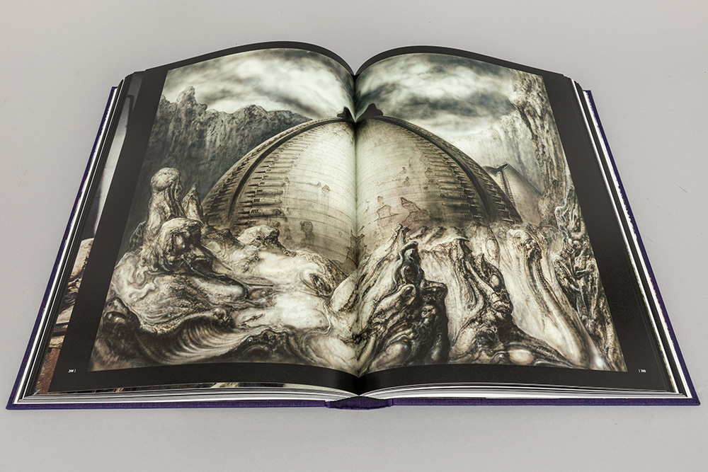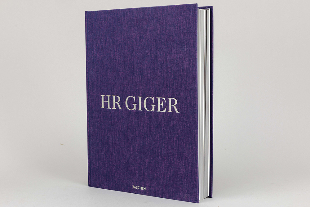 set of a H.R. Giger hand signed Art Card and a XL book by Taschen with its green plexi stand
