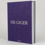 H.R. GIGER (1940 – 2014) set van een XL kunstboek van Taschen, een handgesigneerde “Art Card” (17 x 33) & een groene plexi standaard