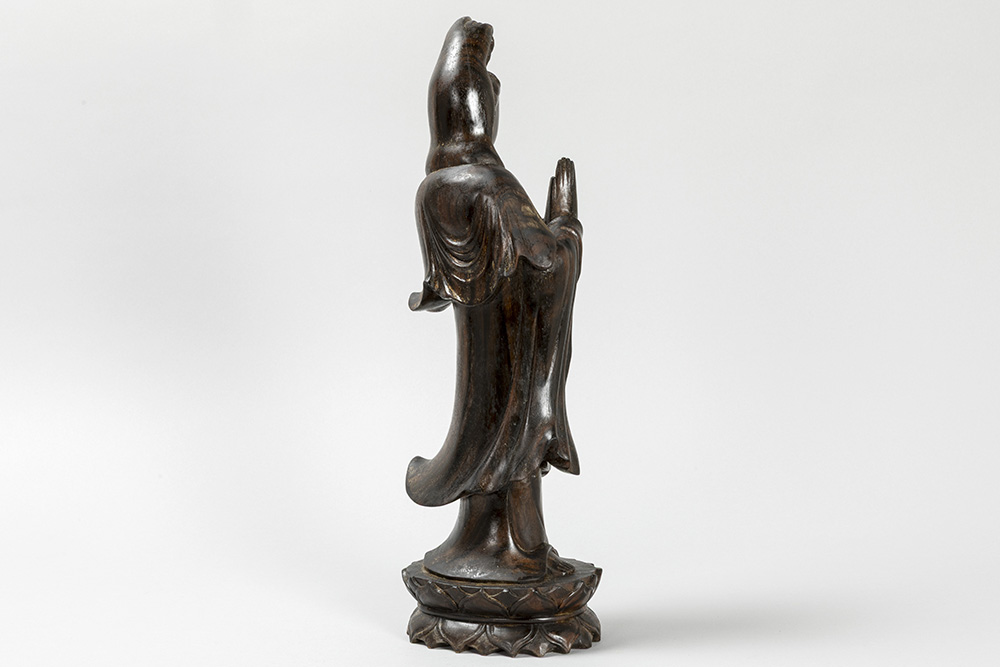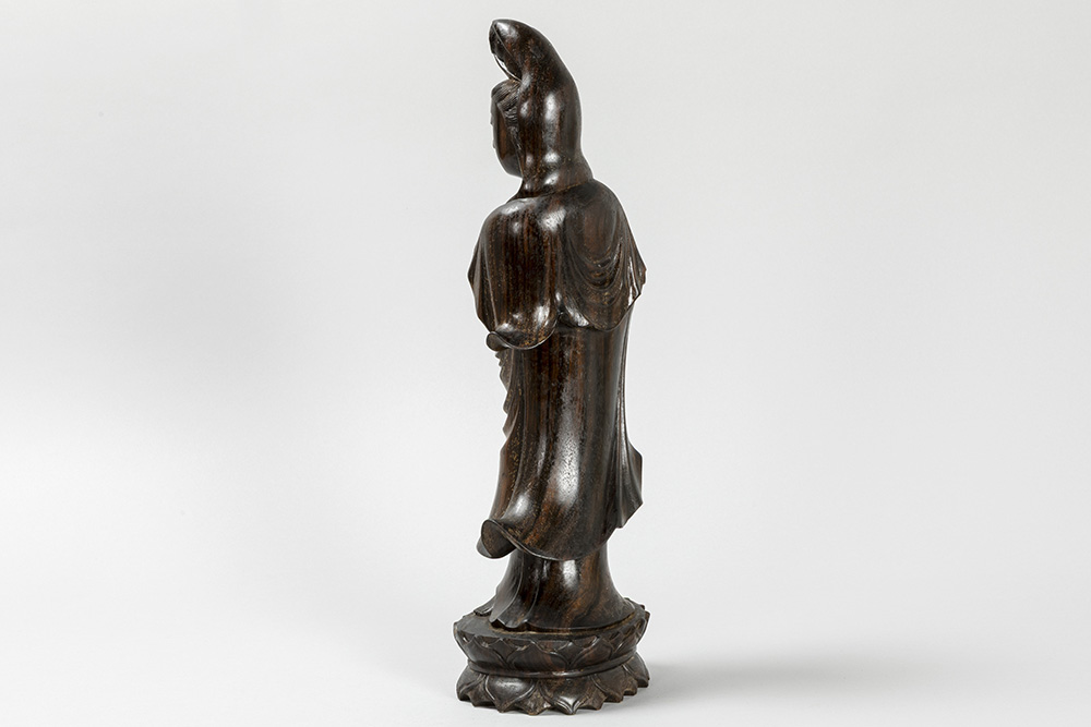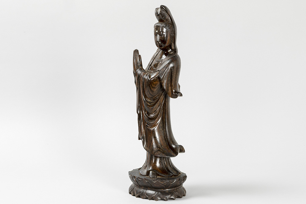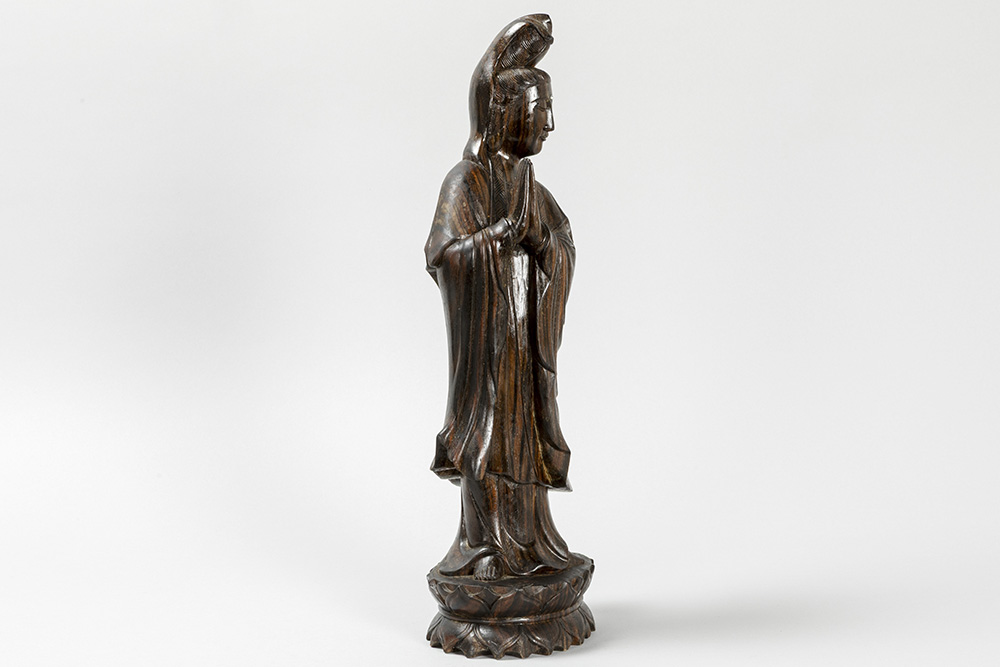 Hardhouten sculptuur gerealiseerd in Taiwan : “Quan Yin” – hoogte : 43 cm