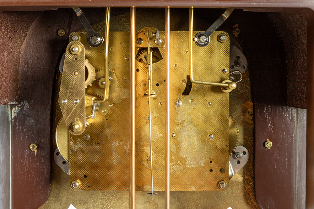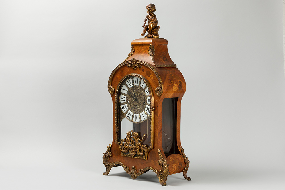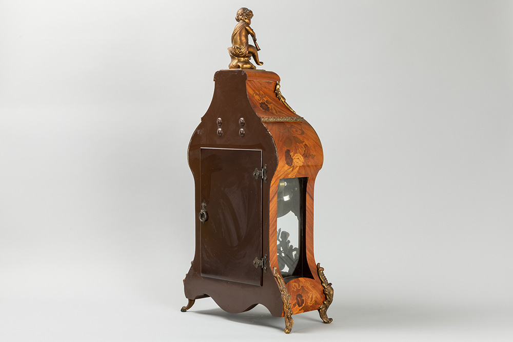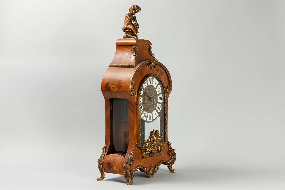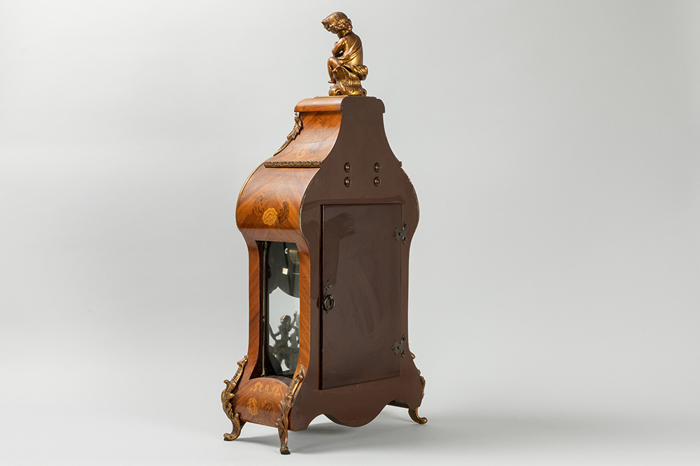 Kartelklok met kast in marqueterie met bronsbeslag in Lodewijk XV-stijl – hoogte : 76 cm