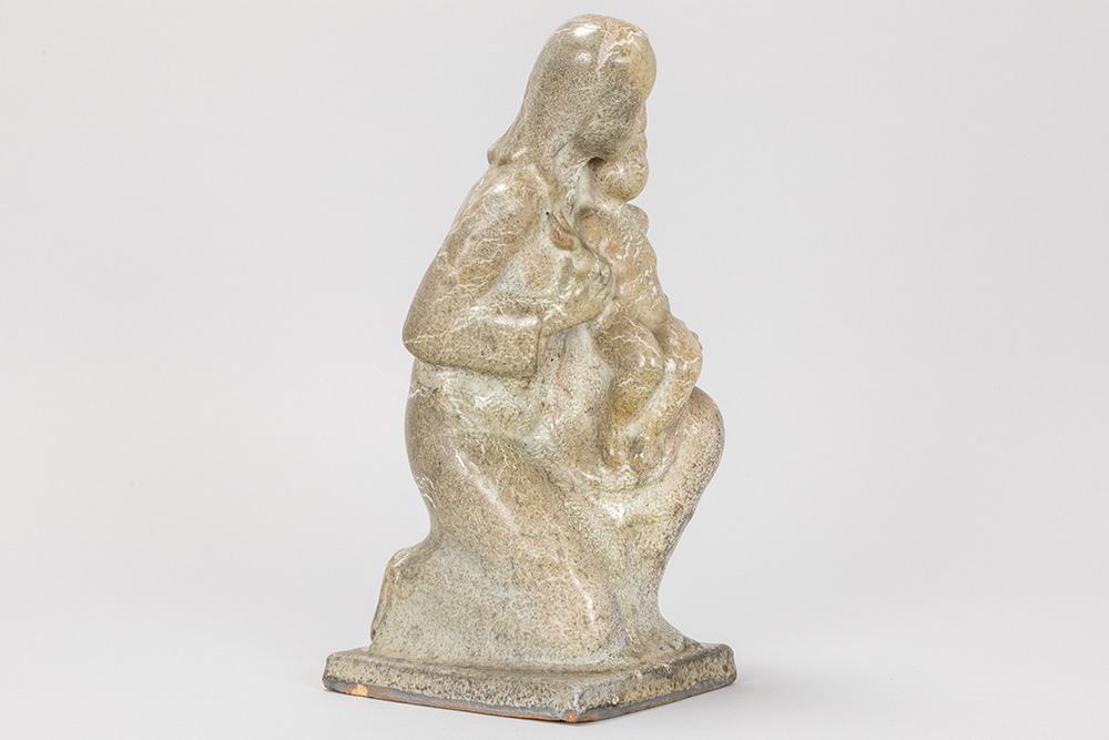 IH 20ste eeeuwse sculptuur in geëmailleerde grès : “Maternité” – hoogte : 31 cm gemonogrammeerd