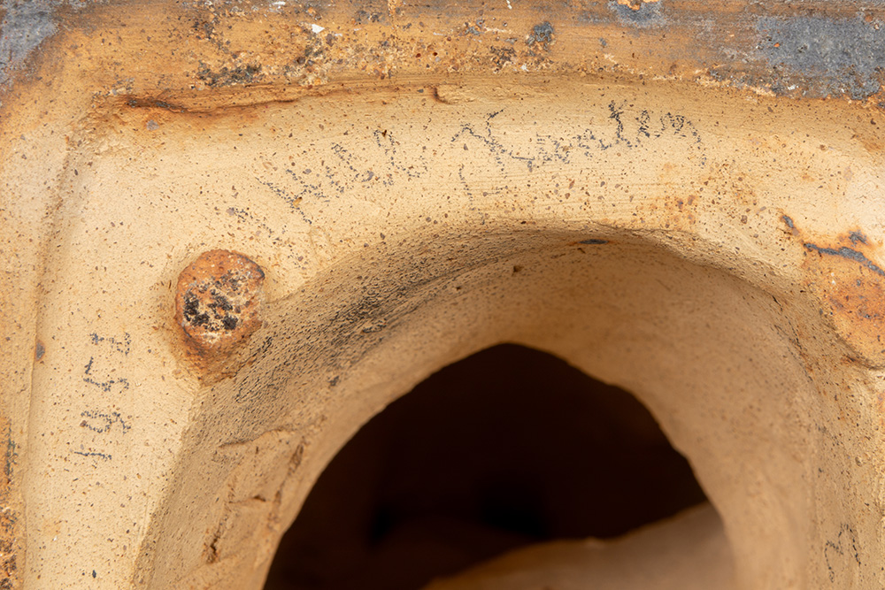 20th Cent. IH monogrammed sculpture in enameled earthenware