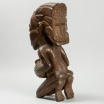 Decoratieve Afrikaans sculptuur in hout in Luba-stijl : “Vrouw zittend op de knieën” – hoogte : 55 cm