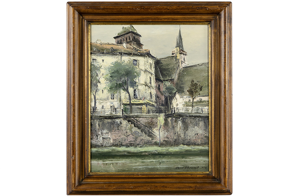 HIRAKAWA ISAMU (1921 – 1989) olieverfschilderij op doek : “Zicht te Parijs” – 41 x 33 getekend met ceritificaat en info