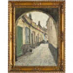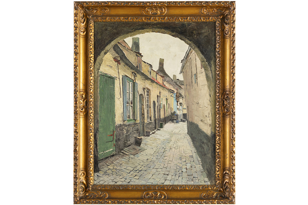 KEULLER VITAL (1866 – 1945) olieverfschilderij op doek getiteld “De Radijzengang Antwerpen” – 80 x 60 getekend en gedateerd (19)27 en met expo-labels op verso