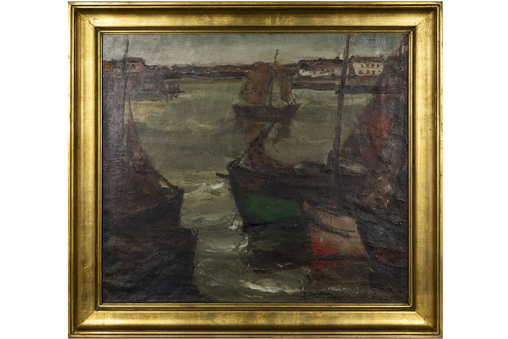 CREYTENS JULIEN (1897 – 1972) olieverfschilderij op doek : “Zeilboten in de haven” – 70 x 80 getekend