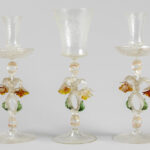 ’antique’ Venetian set in Murano glass with a pair of candlesticks and a candlestick