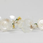 Set van drie ‘antieke’ Venetiaanse sierstukken in Muranoglas : een paar kandelaars (25,5cm hoog) en een milieu de table (26,5 cm hoog)
