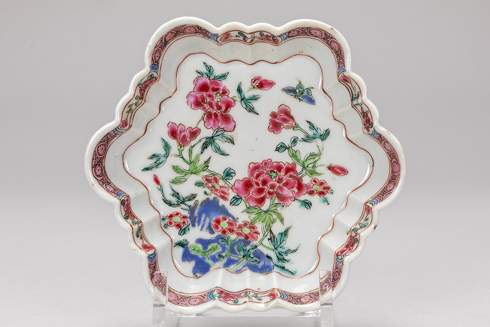 18th Cent. Chinese hexagonal “patti” in porcelain with floral ‘Famille Rose’ decor