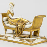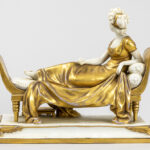 Mooie ‘antieke’ bibelot in gemerkt porselein met de voorstelling van Madame Récamier – 18 x 24 cm