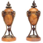 pair of antique neoclassical lidded vases in marble and gilded bronze