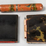 Lot (3) met twee antieke balboekjes, één in schildpad en geelgoud en één met een pen in geelgoud (18 karaat) & een “Vernis Martin”- naaldenkoker