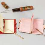 two antique ball books, one in tortoiseshell and yellow gold and one with a yellow gold (14 carat) pen & a needle case in “Vernis Martin”